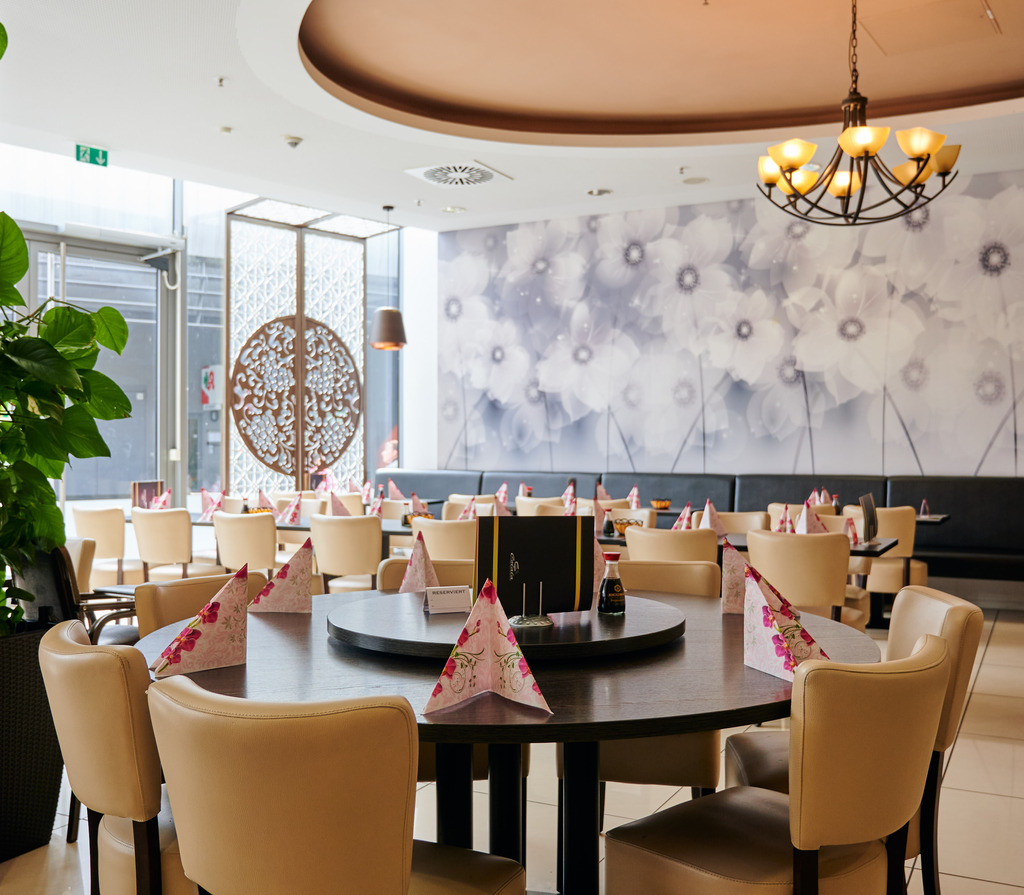 Çin, Japon ve Moğol mutfaklarından lezzetli yemeklerimizin tadını çıkarın ve aroma çeşitliliğinin keyfini çıkarın. Özellikle alerjisi olanlar için önlemler aldık: Yemeklerimiz sürekli olarak glutamat içermeden hazırlanmakta, böylece rahatça tadını çıkarabilirsiniz.